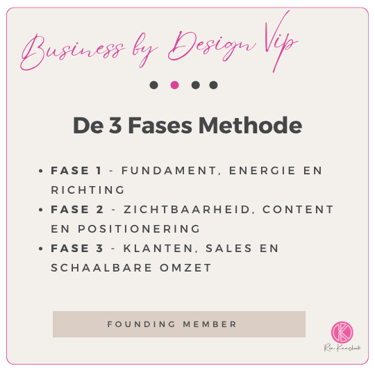 Business by Design is een nieuw en groeiend membership waarin we niet blijven hangen in losse kennis, maar samen bouwen aan een business die past bij jouw energie.